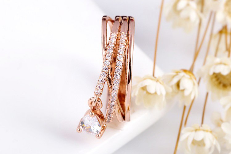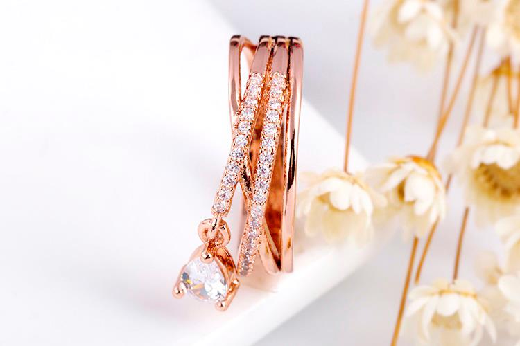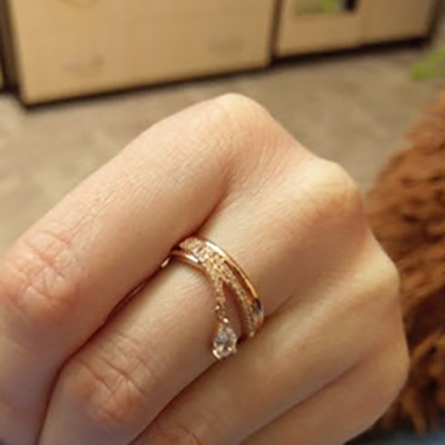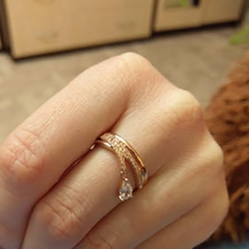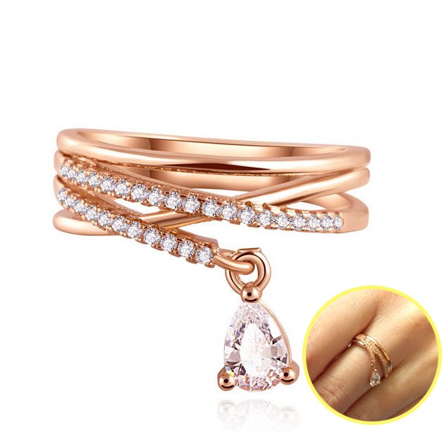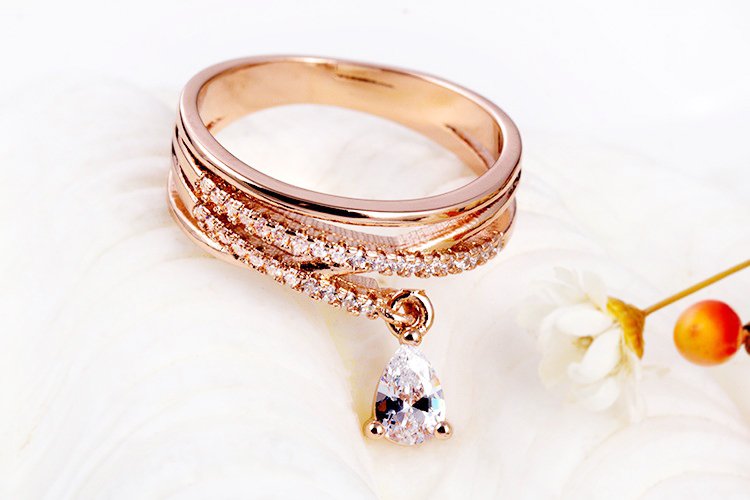 - แหวนหยดน้ำ (Rose Gold) ตกแต่งด้วย เพชร CZ เกรด AAA