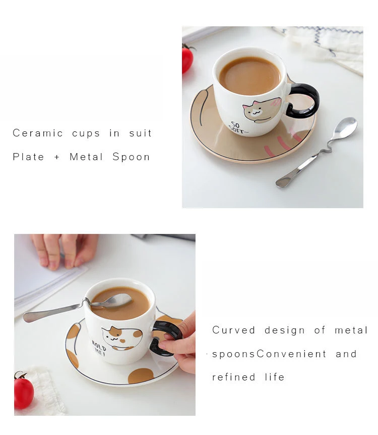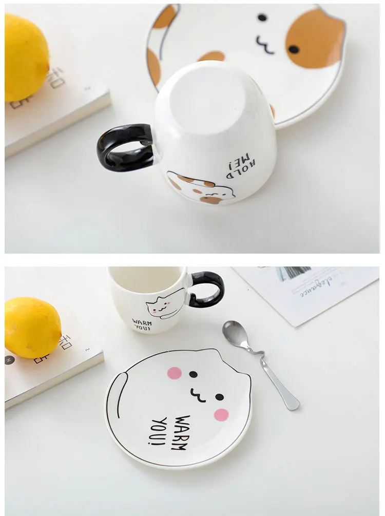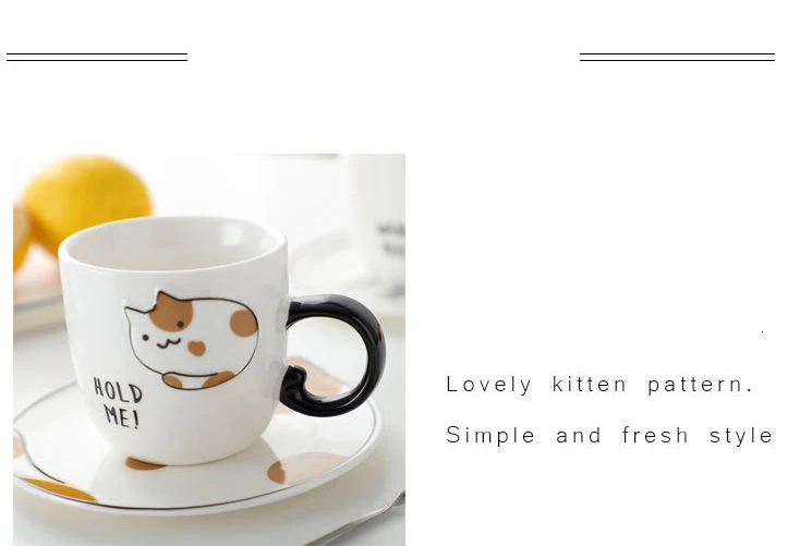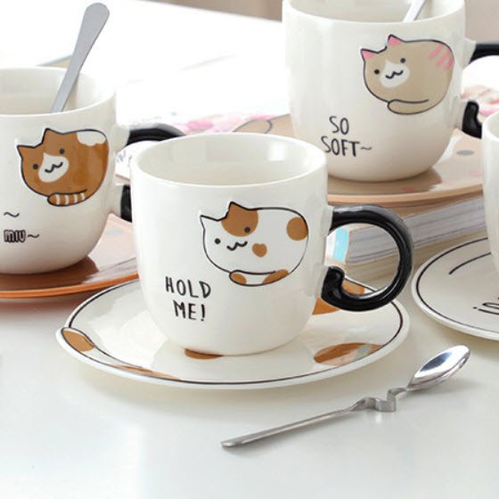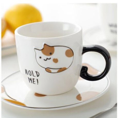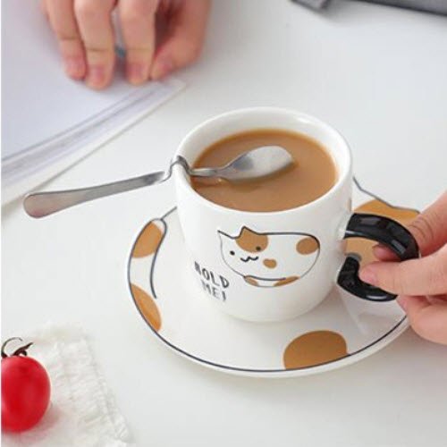 HOLD ME! เซตแก้วกาแฟเซรามิคลายแมว + จานรองแก้ว + ช้อน (แมวขาวลายจุดน้ำตาล) เซตแก้วกาแฟสุดน่ารัก ข้างแก้วเป็นตัวน้องเหมียวนอนอมยิ้ม พร้อมข้อความ HOLD ME! เพิ่มความน่ารักด้วยจานรองแก้วเป็นหน้าน้องเหมียวแถมมีหางน้อยๆขดอยู่ด้วย ^^ เพิ่มดีเทลเก๋ๆ ด้วยช้อนกาแฟสแตนเลส ที่ออกแบบมาให้มีรอยหยักตรงโคนช้อน สำหรับให้วางพักช้อนลงล็อคตรงขอบถ้วยพอดี น่ารักสุดๆ เป็นแก้วกาแฟที่เห็นแล้วอารมณ์ดี เหมาะสำหรับเป็นของขวัญสำหรับคนพิเศษ