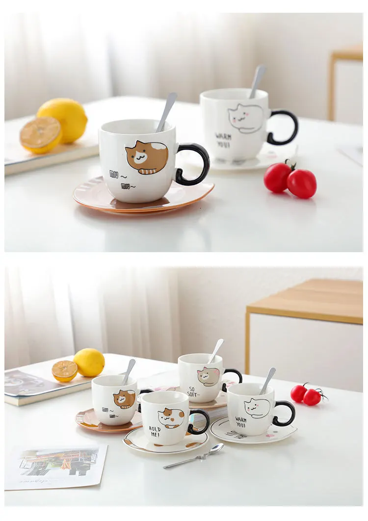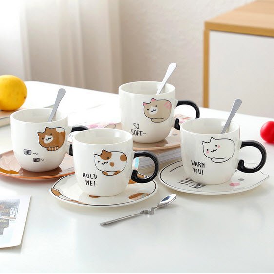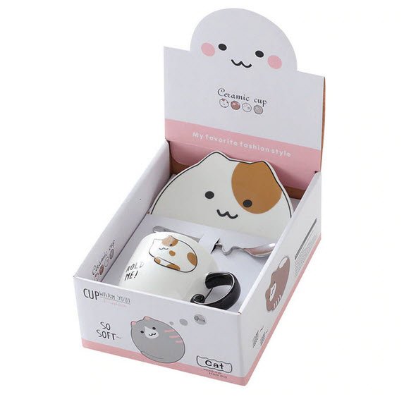 - ชื่อสินค้า แก้วมัคเซรามิค CAT SO SOFT พร้อมฝาปิดและช้อนกาแฟสแตนเลส (แมวเทาหูชมพู)