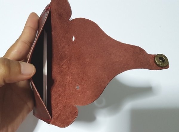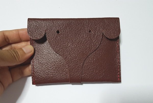 กระเป๋าหนังแท้ ใส่บัตรใส่แบงค์ใส่เหรียญ รูปหน้าช้าง สีแดงเลือดหมู