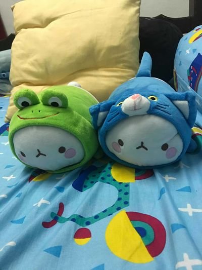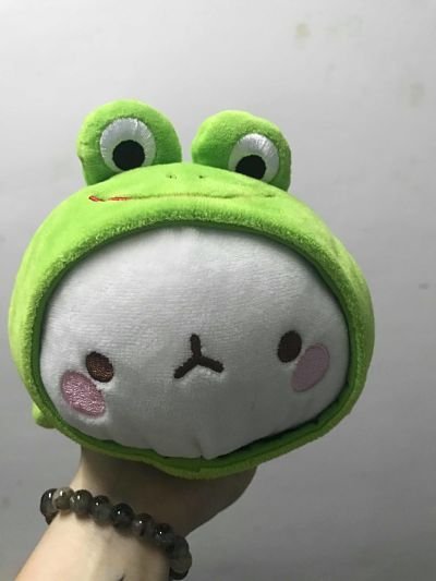 ตุ๊กตาอิโมจิตัวขาว ใส่ชุดกบสีเขียว
